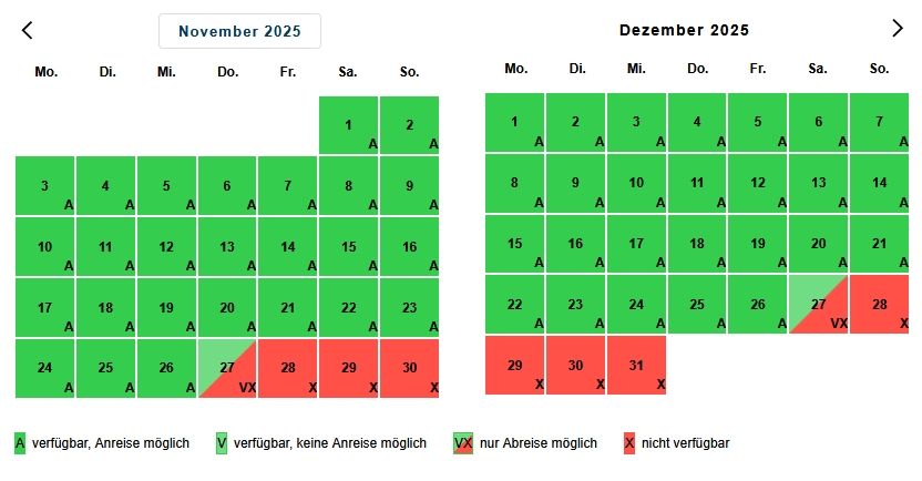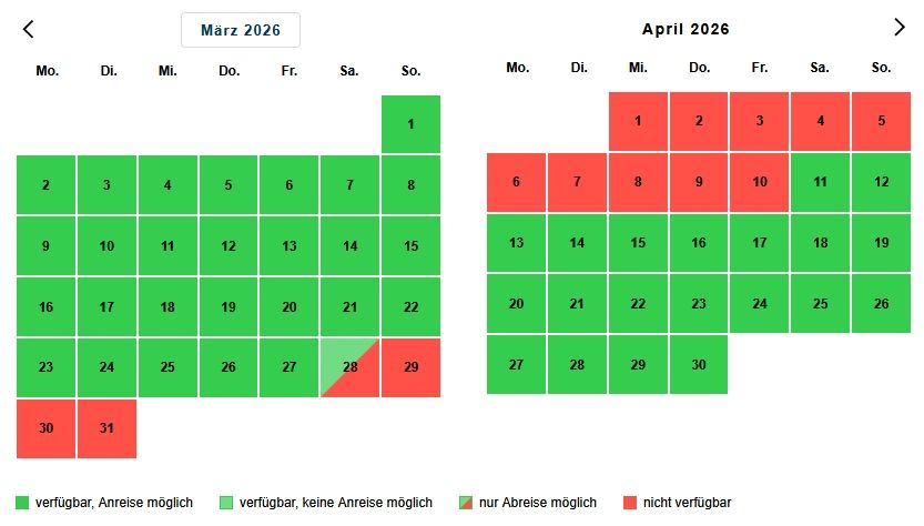- Bei Ihrer Buchung dürfen sich die Anreise und Abreise